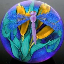 Tags: glass, paperweight, floral, dragonfly